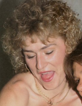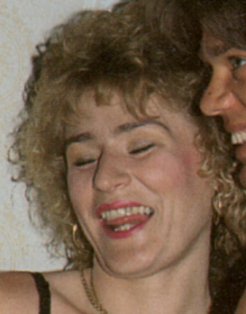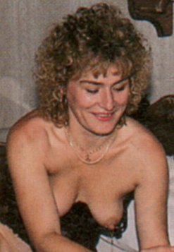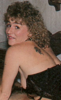 - tattoo, left shoulder-blade; ring in (bald) pussy; bolt-on-chain through left nipple, magazines: ÖKM 22 (May 1992)