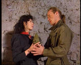 3) XNK1407 [it's her: she has that very prominent cyst on the side of her nose] runs into an outbuilding. She has sex with a ponytailed [?army deserter]. CC walks in, makes her tie up the other guy, and has anal sex with her.